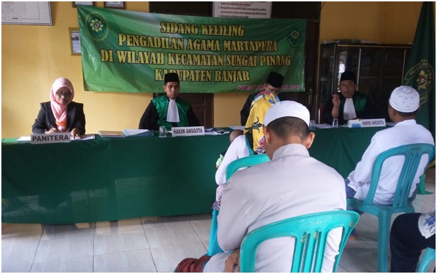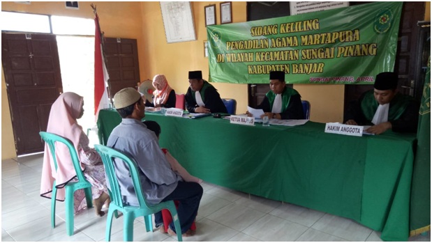 Martapura, 10 April 2019 Pengadilan Agama Martapura melaksanakan sidang keliling di desa Pakutik Kecamatan Sungai Pinang Kabupaten Banjar, Kegiatan ini merupakan salah satu upaya Pengadilan Agama Martapura untuk meningkatkan pelayanan kepada masyarakat pencari keadilan khususny auntuk daerah yang sulit terjangkau.